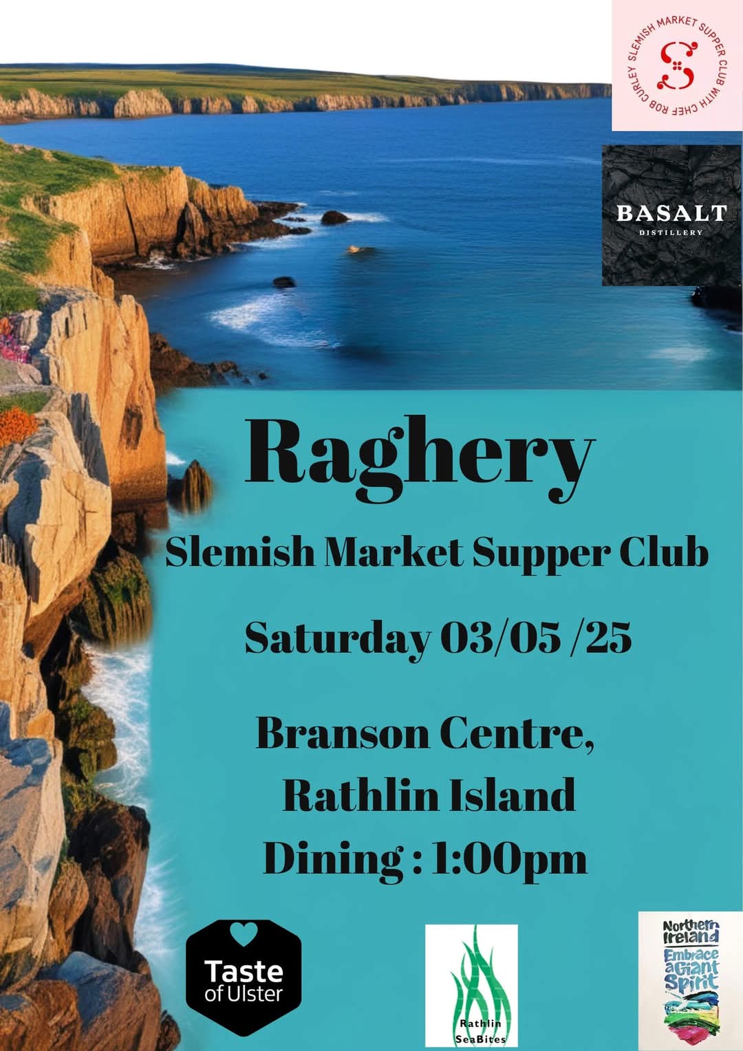 Many thanks to everyone who dined with us, Basalt Distillery owner James, Ksenia and everyone who helped us on Raghery, the magical Island off the North Antrim Coast. Rathlin at its finest.